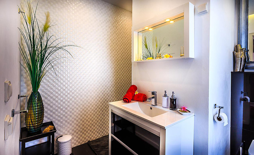 Die zwei grosszügigen, eleganten und mit viel Stil eingerichtete Zimmer verfügen über komfortable Betten, Klimaanlage, einem eigenen Balkon, Fernseher, Nespresso-Kaffeemaschine, Wasserkocher. Die Badezimmer in eleganten Tönen gehalten sind nicht zu übertreffen, schöne ebenerdige Duschen mit Pflegeprodukten die vor Ort hergestellt werden.