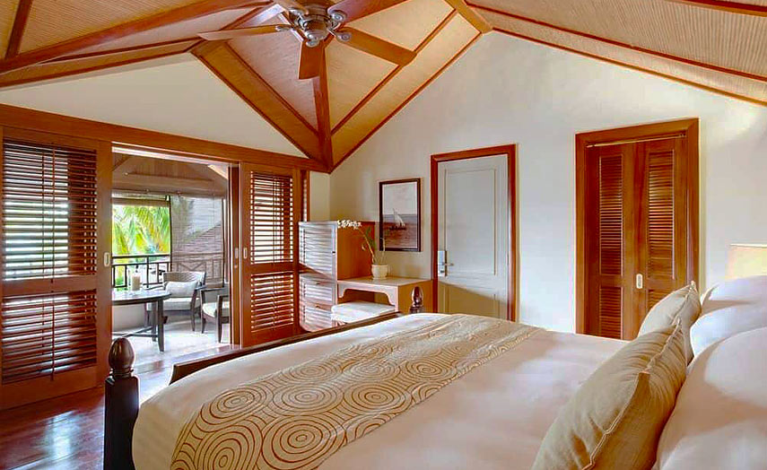 149 Zimmer und Suiten mit moderner Einrichtung verteilen sich auf zweistöckige Bungalows.