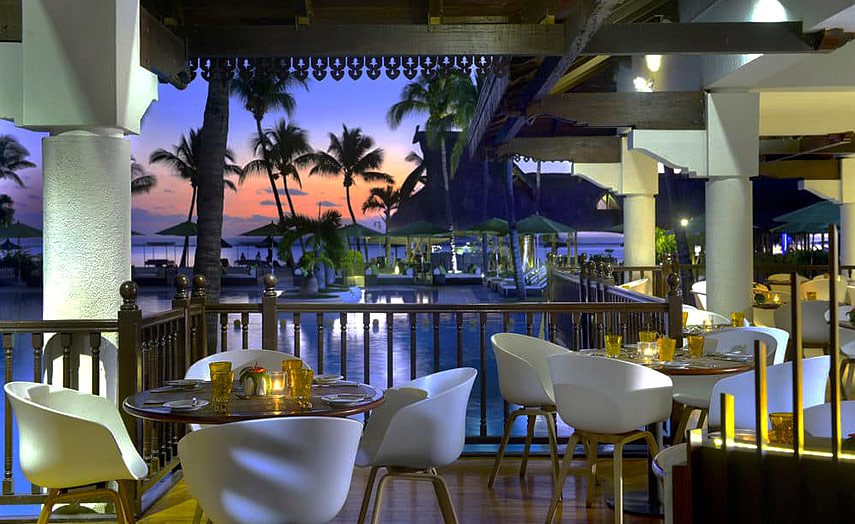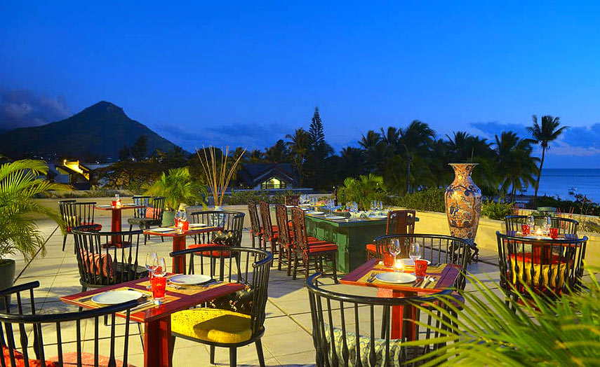Das Hauptrestaurant «Le Ravinala» am Pool verwöhnt mit einem grossen Frühstücksbuffet und abends abwechselnd mit Themenbuffets und mehrgängigen Menüs. Das Strandrestaurant «Le Tamassa» serviert tagsüber köstliche lokale Küche und leichte Snacks. Traditionelles China-Restaurant «Le Ming Court», das mit einer fantastischen Terrasse aufwartet und japanische Erlebnisküche im Restaurant «Le Teppanyaki» mit 2 Teppan-Tischen im Hauptgebäude. Das Feinschmecker-Restaurant «Le Jacaranda» lädt zu frischen Meeresfrüchten und französischer Küche ein. Den Gästen stehen in der Halbpension 3 Restaurants zur Verfügung. Zusätzlich zum Hauptrestaurant können Gäste auch im «Le Ming Court» und im «Le Jacaranda» ohne Aufpreis speisen.