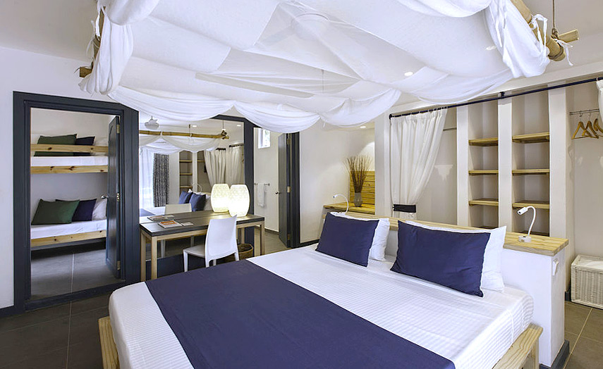 Familienzimmer (ca. 43 m2) verfügen über dieselbe Ausstattung der Doppelzimmer Comfort, sind aber grösser, mit zusätzlichem Schlafzimmer sowie Balkon oder Terrasse. Buchbar für maximal 2 Erwachsene und 3 Kinder.